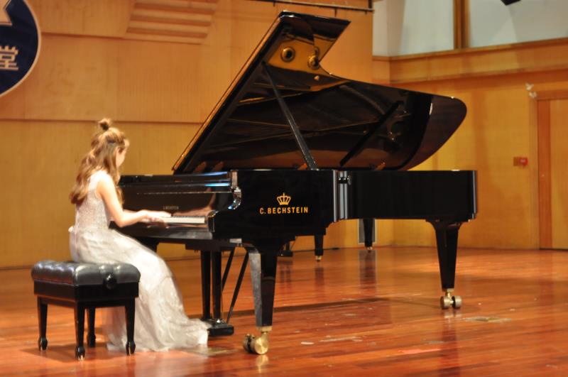 首先,王晓佳老师介绍了此次音乐会的节目单并表示音乐不分民族。此次课堂将会呈现亚洲、欧洲、美洲各国最具民族风格代表的钢琴音乐,采用视频、演奏、现场讲解三种手段相结合的方式对各国的钢琴音乐艺术进行全方位的解读,使音乐所表达的意境得到更充分的展现。让同学们感受来自不同国家不同时期的民族音乐风格,充分感受音乐文化的多元世界。 演出正式开始首先是由林洁美同学演奏的《悲歌》,作品但并不象题目那样呜呜咽咽, 而是让人感受到一种“斯人已逝”的无奈,充满了俄罗斯精神中令人窒息的宁静感,和一种寒冷却令人血液凝固的感动。之后,是由王晓佳老师、向斯帖四手联弹演奏的《小组曲》舒缓的旋律让人联想到一种童话色彩,随着乐章的发展有着优美的摇摆节奏,和富于变化的速度,琴声中充满了明亮的色彩。其次,张感佩同学为大家带来的《樱花》整首曲子描述和赞扬了樱花的美丽、高尚和纯真,具有浓厚的日本民族气息,整首曲子充满了幻想效果。除此之外还有《挪威舞曲--清晰的快板》、《肖邦f小调幻想曲op.49》、《西班牙组曲--阿斯图里亚斯》、双钢《华丽的探戈》等精彩演绎。