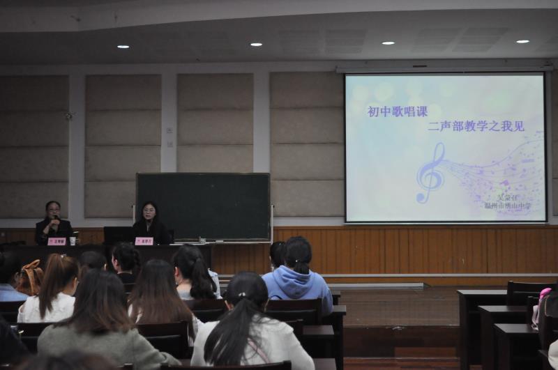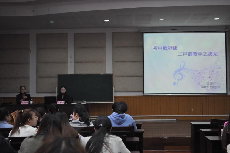 201举行了“初中歌唱课 二声部教学之我见”音乐公开课堂,本次讲座是由12届毕业生吴蒙召主讲。