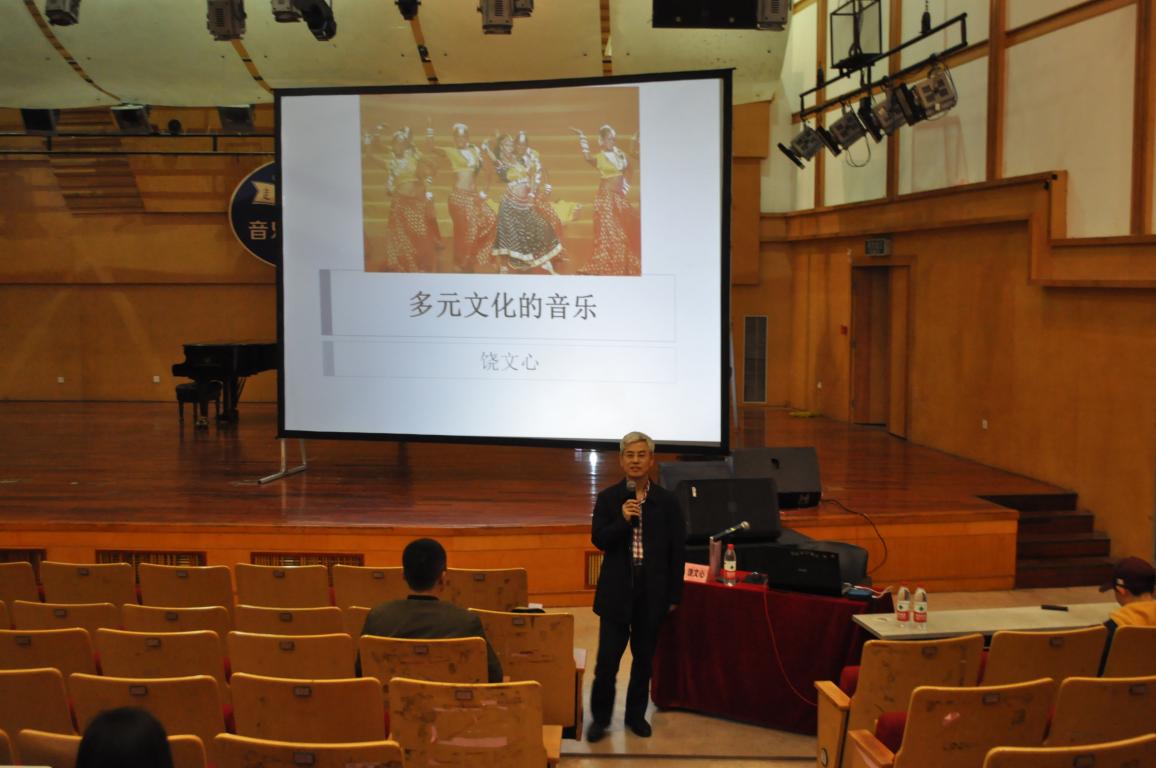 兼职教授饶文心主讲,主讲题目为“多文化的音乐”。