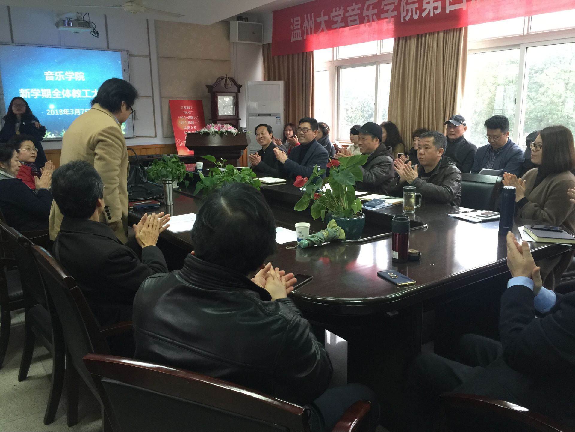 会议伊始,赵玉卿院长向与会各位老师隆重介绍了新引进的海归声乐教授——李成柱博士,赵玉卿院长称李成柱教授的到来对学院学科建设与发展注入了新鲜的血液及有力的支持,李教授在工作中除了完成声乐教学常规工作以外,并担任了声乐教研室主任,得到了全院教职工的热烈欢迎。