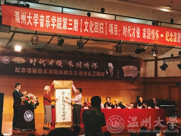 接着由陈田鹤女儿陈晖用深情的语言从家人的角度叙述了陈老的光辉音乐历程和丰富多彩的家庭生活。期间展示了大量陈老年轻时的照片、学习工作情况,让在场所有的人直观的近距离的更加了解温籍音乐家陈田鹤先生。并代表家人向色情视频 赠送题字《情系瓯越 满苑栋梁》。