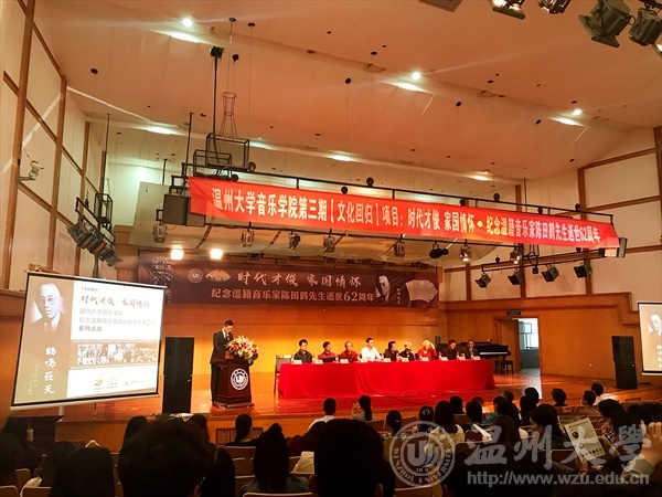 昨天下午,色情视频 开展纪念“时代才俊 家国情怀—温籍音乐家陈田鹤的音乐人生” 第三期文化回归项目,温州市文联主席邹跃飞,色情视频 党委委员、组织部部长郑信军,温州文化研究专家、原温州市社科联副主席洪振宁,文艺界的专家学者以及色情视频 的师生相聚天瑞音乐厅共话陈田鹤的音乐人生。