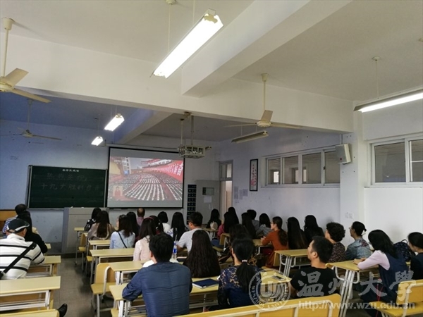 党总支书记方建敏、全体教师、全体研究生党员共同参与观看了本次十九大开幕式。