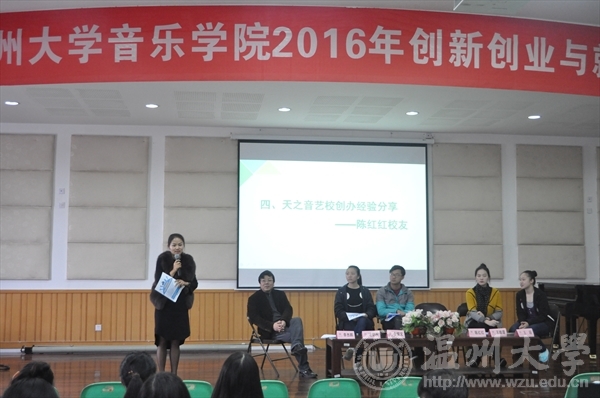 全体16级同学一同在音乐楼201参加了2016年创新创业与就业经验分享会。此次分享会邀请了往届的校友、学长学姐以及相关老师来给大家讲关于考编、考教师资格证、创新创业等内容。分享会由李杰鹏老师主持。 首先是致知艺术国家级创业团队队长王超为我们介绍了致知艺术,以及其主要的作用,并给我们分享了她的创业经历,她说:大学生创业我们收获的不仅仅是金钱,更重要的是走上社会的本钱,在大学就能拥有别人走上社会才感受学习的东西,你将比别人更快一步。致知艺术行政总监沈梦雅为我们总结了致知艺术的创业精神和创业意识:创新为先,专注精神,独立自主,乐观自立,敢于冒险,拥抱变化,创造价值,机会导向,创新为本,整合资源,风险意识。接下来了李杰鹏老师为我们解释了什么是创业,大学生应该如何创业,创业可以被教育吗,学习创业有矛盾吗,没有创业的打算还需要接受创业的教育嘛这几个问题,和大家一一解释讨论,同学们都受益匪浅。网络创新电商方面余耀文学长为讲述了他的电商创业之路。紧接着天之音艺校校长陈红红给我们详细的介绍了天之音艺校,以及她的创业经验,并传授给我们很多她碰到的问题的解决方法,还有创业时需要注意到的问题等。最重要的就是大三的学姐王皓璟的发言了,她着重讲了我们马上就要面临的教师资格证考试,她详细的给同学们讲了考编和考资格证的内容,同学们都很认真的倾听,并做了笔记。