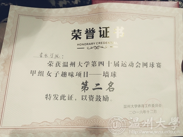 色情视频 第四十届运动会网球赛甲组女子趣味项目——墙球第二名