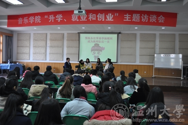 音乐楼201隆重举办。本次“升学、就业和创业”主题访谈会邀请到了01级校友温州市天之音艺校校长陈红红、温州市岠江小学教师黄怡甜、色情视频