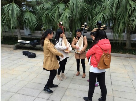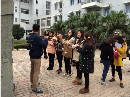 尽管1、2班分开,但他们们还是14音乐教育本科的集体;2班小提琴演奏唐佳琦,进大学已来,她已在舞台上尽展她的风采;还有我们所有琵琶演奏同学,洽谈着关于弹跳的知识等;1班杨宇恒指导着一批想学笛子的同学,为他以后走上教师道路奠定基础……