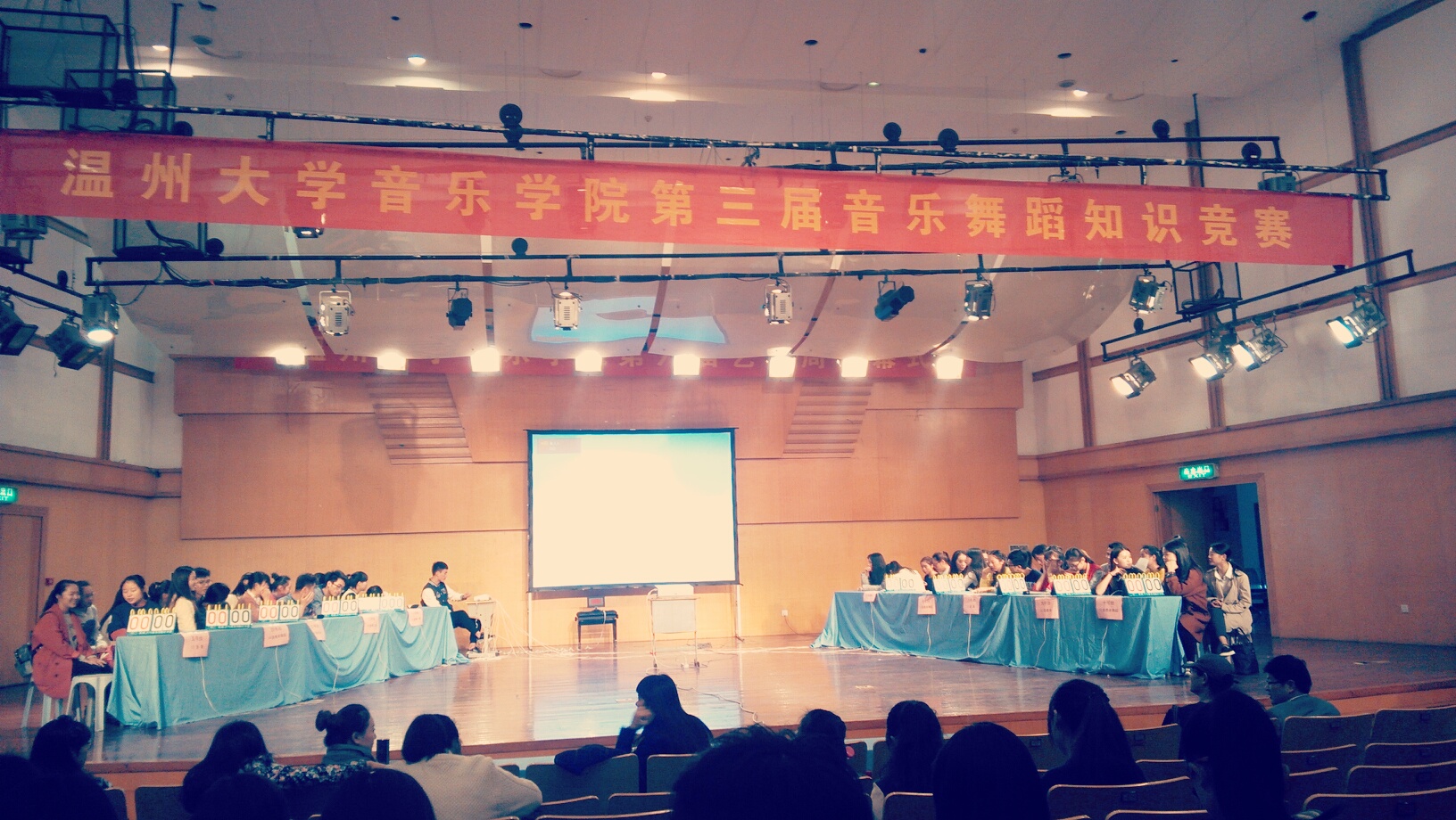 第三届音乐舞蹈知识竞赛在北校天瑞音乐厅隆重举行。学院院长赵玉卿、党总支书记刘青松、副院长李杰鹏、副院长王文韬以及各教研室老师与全院同学们到场观赛。本次竞赛评委为理论教研室邓深海老师、柏互玖老师、江松洁老师与舞蹈教研室的李恒子老师。
