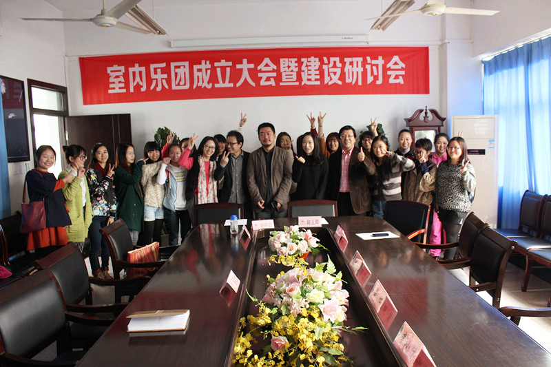的乐器种类不多,想弄成大型的乐团有困难,成立室内乐团给学生提供平台,使学院在教导,展演,能提高专业的水准实践能力,还能和国内外专家进行讨论,对乐团的定位和发展要明确。接着,室内乐团团长胡锦超老师讲话,提出了现在成立室内乐团的几个问题:1.人太少,成立不太切合实际。 2.讲了室内乐的概念,重奏组是常见的组合方式。 3.组合方式有很多,不必太按常规,比如有小提琴与古筝的合奏,吉他与小提琴,钢琴与小提琴,钢琴与民乐的合奏等。 4.要多看,要有自己的想法,不要只按照书上的演奏。接着,由大提琴演奏家梁松发表自己的意见,说演奏,要有自己的风格,这样演出才更有意思,找好的搭档,很重要,搭档之间要相互欣赏,相互学习,大家都受益匪浅。接下来,嘉宾李小倩老师谈了自己的感想,她说当自己一个人演奏时,可以根据情绪自由的舒张,曲子的快慢也可根据情绪调节,而当和大型乐队合作时,就不能按照自己想法,要在乐曲整体的框架之内。作为一个钢琴演奏家,和其他乐器合作之后才知道缺什么,有些弦乐器能表达的,钢琴做不到,这时候就需要相互配合,吸取别人的优点,听取同伴的意见,这样才能演奏出更好的音乐。梁松老师现任上海爱乐乐团首席大提琴家,国家二级演奏演员,这次也来到了大会,提到在合作中大家的交流,碰撞能很好的提升自己的技术,乐器本身不重要,大家要有共同的目标,这样的合作才是成功的合作。