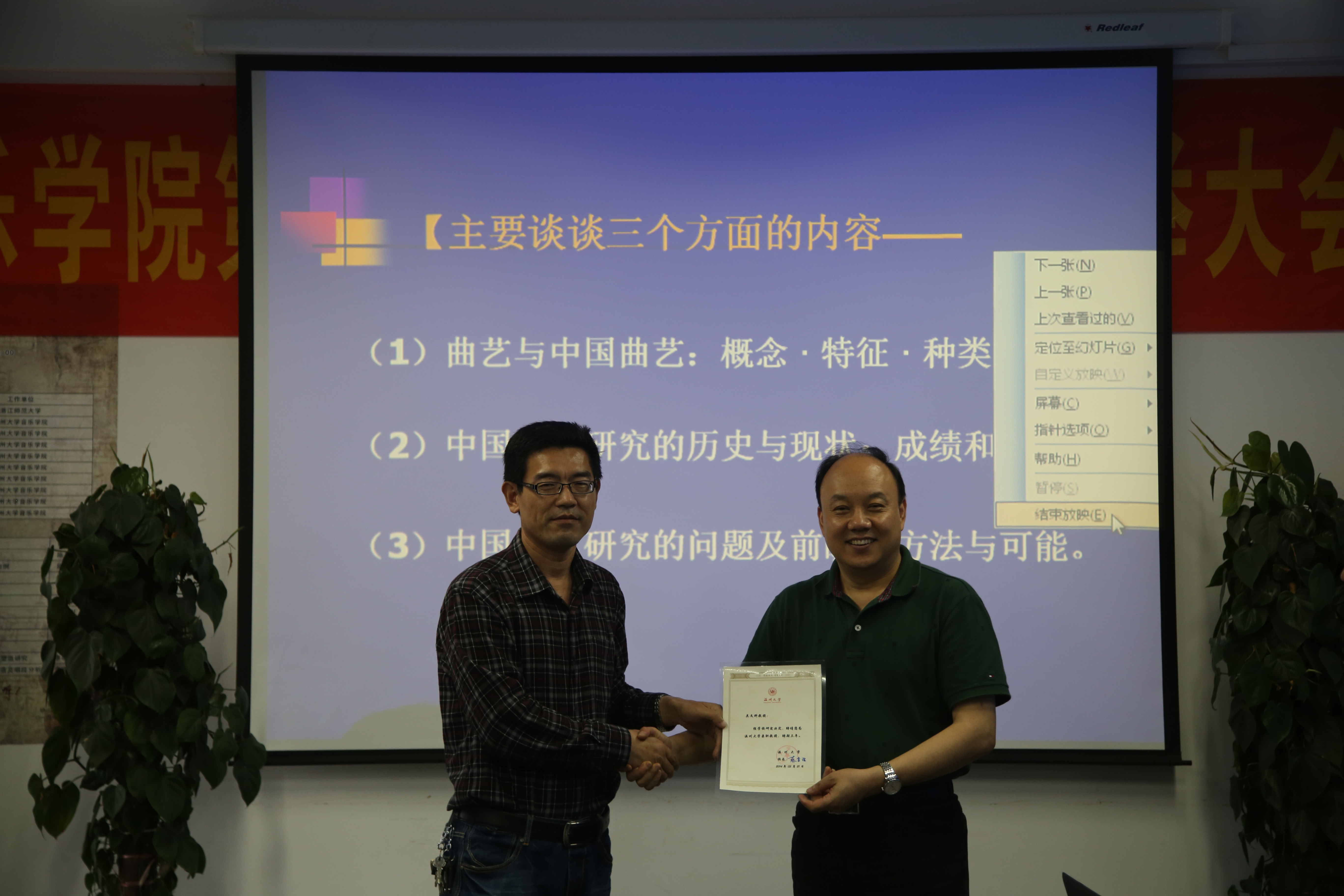 特邀中国艺术研究院曲艺研究所所长,研究员,博士生导师,中国曲艺家协会副主席,国家非物质文化遗产保护工作专家委员会委员吴文科教授莅临举办了主题为“中国的曲艺研究:历史、现状与前瞻”的学术讲座。讲座正式开始之前,赵玉卿院长对吴文科教授的研究领域做出介绍,对其学术成果做出高度评价,色情视频