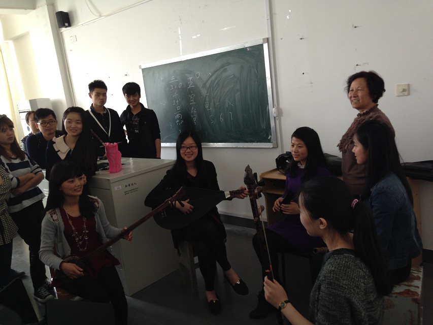 的学生们交流学习,听了他们独有的课程:南音。南音由三弦、二弦、洞箫、琵琶四种乐器演奏,用闽南方言演唱,同学们认真的记录笔记,聆听美妙的南音音乐;课堂上泉州师范学院的同学们为色情视频