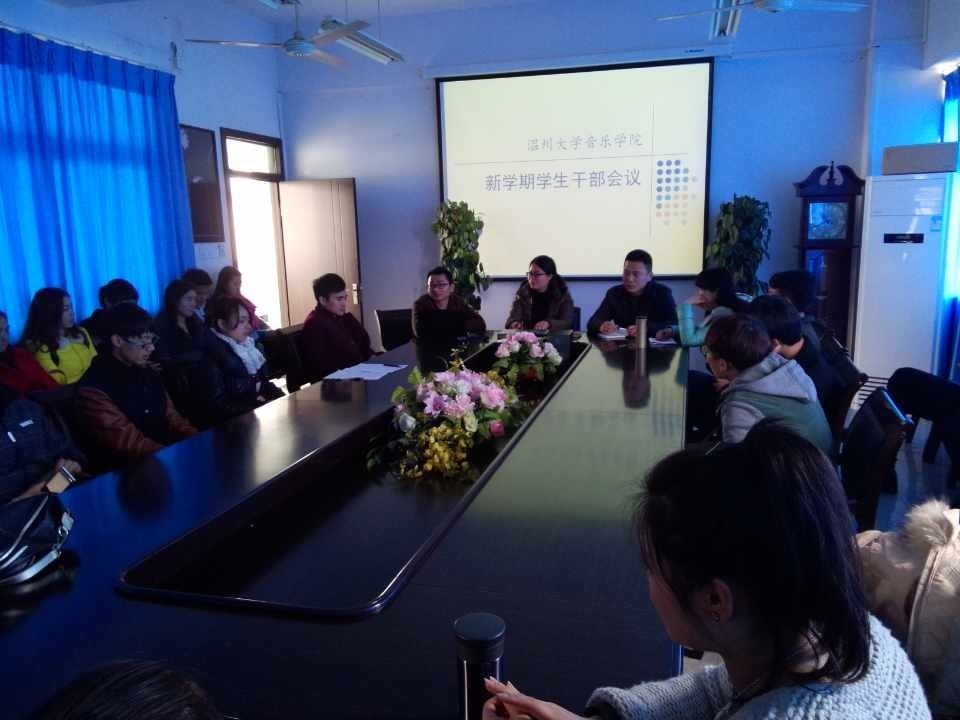 文明行为养成”大讨论活动以及艺术周、公益课堂、师生节、运动会等活动的成功举办,对各位学生干部的辛勤付出和工作成效表示了充分肯定。接着她将本学期的工作重点向大家做了布置和传达:一、今年学院定位为“教风学风建设年”,团委学生会要始终围绕这一中心任务开展各项活动,并制定落实好各项相关制度;二、要努力做好大艺展宣传和筹备工作,营造浓厚的比赛氛围;三、在毕业季协助做好毕业生独唱独奏会、毕业晚会、毕业典礼等,并成立校友联络和就业服务中心;四、办好新曲传唱“原创歌曲大赛”等赛事;五、筹备并组织好暑期社会实践活动;六、加强学生干部队伍建设工作。另外,林老师还对宣传、课外学分申报、换届等工作也做了强调。