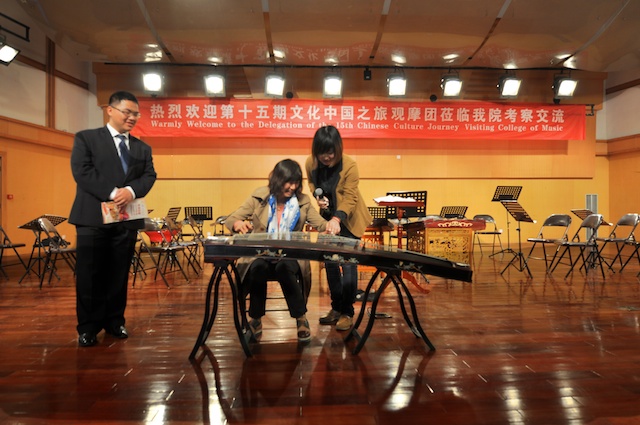 个国家和地区。在学院期间,观摩了色情视频 民乐团校庆节目的排练,赵玉卿院长向来宾介绍了学院的基本情况,用视频短片展示了色情视频 艺术周活动的精彩镜头。同时,学院部分同学向观摩团的成员们表演了古琴、二胡、古筝、琵琶和笙的独奏节目,互动环节,欢声笑语,气氛活跃!观看节目后,来自俄罗斯、美国、菲律宾、泰国的社团负责人纷纷表示,中国音乐文化源远流长,中华民族乐器魅力无穷,民乐团同学们精彩演出,让人大开眼界、深受启发!并热情邀请大家到国外交流、留学。