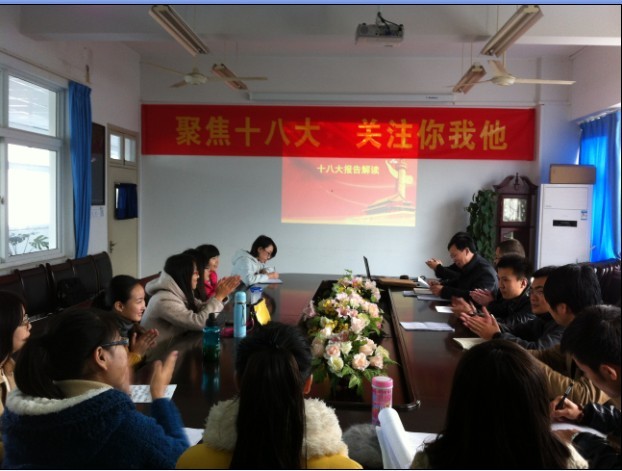 研究生支部书记、副院长王文韬老师给同学们介绍了中国共产党第十八次全国代表大会的主要内容及精神。