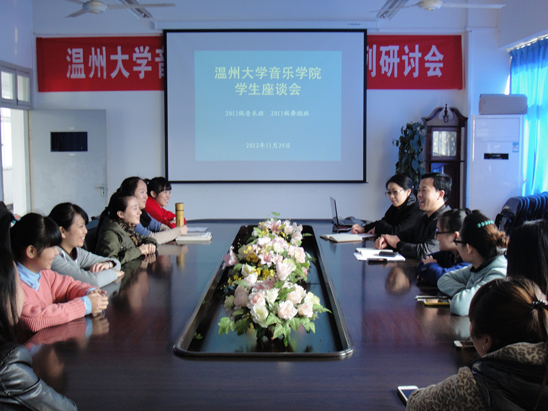 2012年11月29日,色情视频 在309会议室召开了2011级学生座谈会。副院长王文韬老师,学生科负责人蔡晓武老师及学生代表30人参加了会议。座谈会上学生发言踊跃,就专业课的授课问题、学分获得及2011瓯音本同学提出的英语考试、教师资格考试等学生关心的问题,王文韬及蔡晓武老师进行了及时的答复与协调。