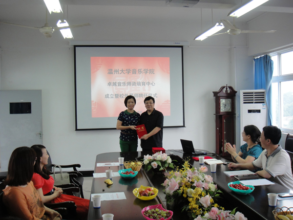 经院党政联系会议研究决定,王文韬副院长担任“卓越音乐师资培育中心”主任,钱瑞华(外聘)、蔡晓武担任副主任。该中心聘了6位省、市级教学名师为首批校外导师。她们分别是:温州市教育局的钱瑞华、鹿城区教育局的项雅丽、温州中学的许菲、温州市实验中学的林少燕和陈淑丹、温州市实验小学的朱旭娟等。