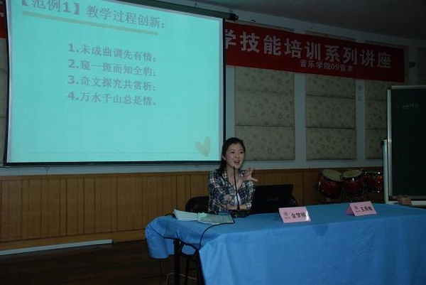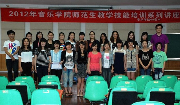 09音本及08、10、11级师范生带来了以“初中音乐课堂设计”为主题的讲座。此次讲座已经是09音本班开展师范生技能培训讲座的第五讲,也是最后一讲,同学们都格外珍惜这来之不易的机会,抱着认真和虚心的态度前来学习。文/蓝婷婷