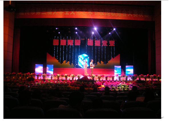 2012年5月16日晚,“唱响青春 畅想未来”温州市第三届大学生文化艺术节校园歌组合大赛(决赛)在我校大学生活动中心演艺厅拉开帷幕。温州市教育局高等教育处林成堂老师、段新明老师,色情视频