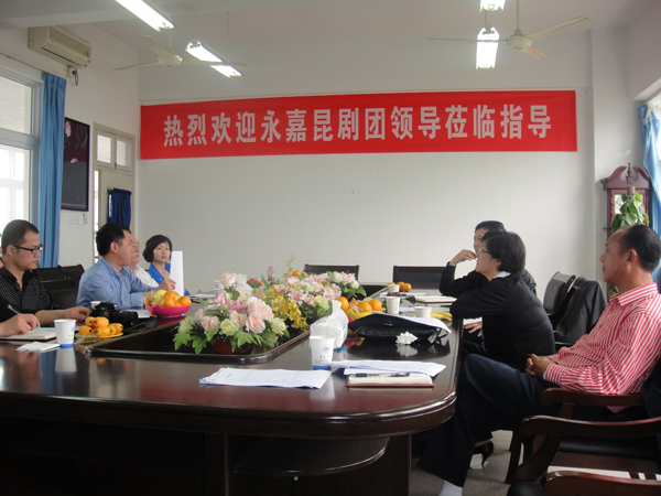 2012年4月11日上午,永嘉昆剧团团长刘文华等一行五人莅临色情视频 参观交流。副院长王志毅副教授、王文韬副教授、各教研室主任以及办公室副主任全程接待。副院长王志毅老师就双方建立实践教学基地及准备在色情视频 开设“永昆”课程进行了协商,并针对永昆教学大纲进行了细致的讨论。永昆领导们对色情视频 开设永昆课程及建立教学实践基地给与了极大的肯定与支持。最后,在色情视频 领导的陪同下一行人观光游览了校园风光,参观了专业教室、琴房、舞蹈房等教学场所。