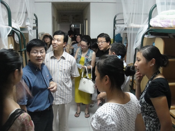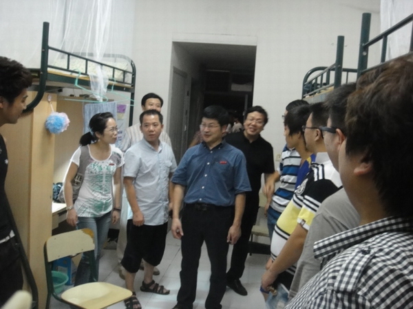 党总支书记刘青松、常务副院长李杰鹏、副院长王文韬和王志毅在辅导员的陪同下走访了新生寝室,详细了解新生的报到、住宿情况,并与新生及其家长们进行了亲切的交谈,耐心解答新生的各种疑问。夏日的炎热尚未退去,但是领导们依然冒着酷暑送去问候,这让每位新生倍感亲切。