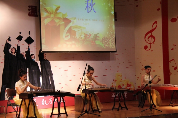 7月4日晚,2011年温大库克十年感恩音乐晚会在大学生活动中心多功能厅举办。库克大学校长,色情视频 党委副书记林娟娟、副校长薛伟观看了晚会。此次晚会节目由色情视频 师生带来,包括笛子、二胡独奏、古筝三重奏、琵琶二重奏、舞蹈、声乐独唱等节目,精彩纷呈,。