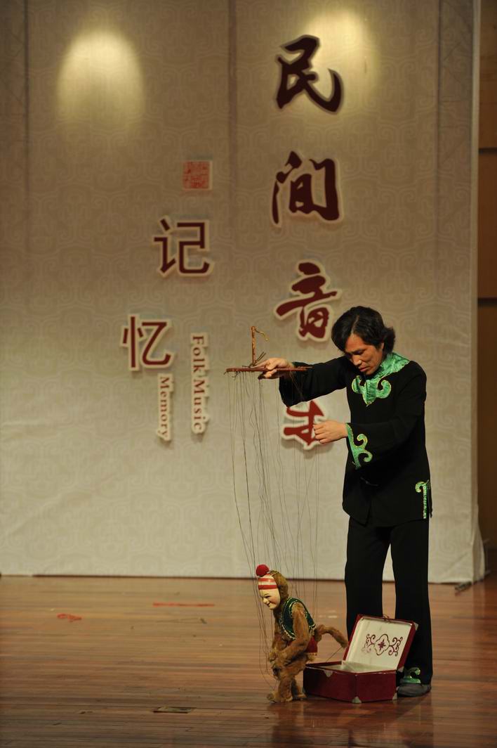 艺术周开幕式结束后,“民间音乐记忆”系列活动第一场表演粉墨登场。浙南民间音乐专家和民间音乐传承人为我们带来了文成吹打《什景》、苍南渔鼓《计划生育好》、平阳木偶戏《耍猴》、温州鼓词《神童放牛》、单挡布袋戏《景阳岗》等五个精彩节目。这些节目勾起了台下观众的童年回忆,精彩纷呈,引得台下叫好声一片,每个节目结束观众席都响起久久不息的掌声,可见民间艺术独特的魅力。