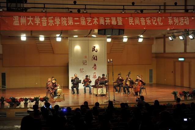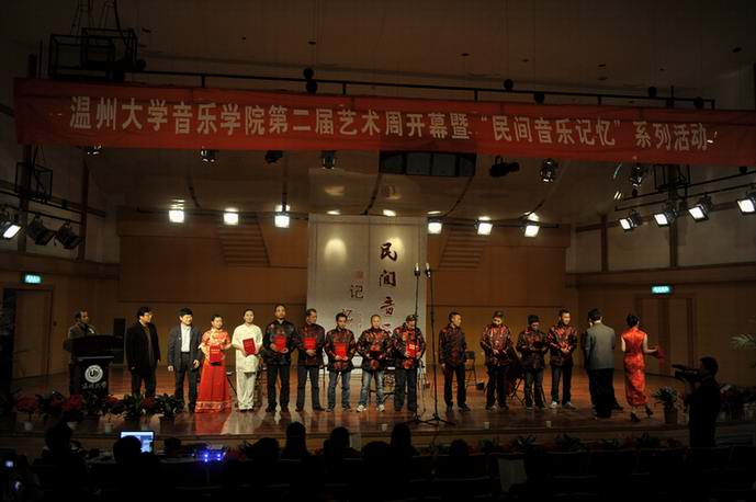 北校音乐厅举行,学校人文社科处等部门领导、学院全体师生出席了仪式。本届艺术周以“浙南区域音乐文化数据库”的建设为依托,以非物质文化遗产的保护和传承为目的,凸显“守望越人遗风,传承东瓯文化”主题。
