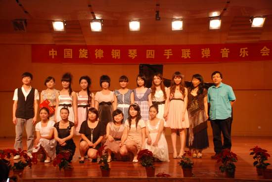 本次四手联弹的曲风都是中国风的,由08、09级的同学共同演奏。共13首,分别是:黄洁洁、范琼带来的《青春舞曲》,林珂珂、孙媛媛带来的《让我们荡起双桨》、《大红枣》,成柳、倪涵文带来的《送我一支玫瑰花》,林张妙、黄洁洁带来的《对花》,娄海晓、叶睛睛带来的《模仿》、《萨丽哈》,高依依、成柳带来的《茉莉花》、《北风吹及窗花舞》,胡乙平、章雨露带来的《步步高》,毛成帅、胡乙平带来的《扎红头绳》等。晚会在林张妙和特邀嘉宾雷成靖的《春节序曲》中圆满结束。