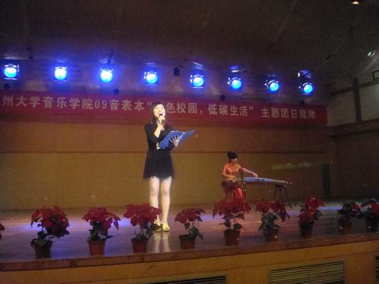 首届团日观摩活动。音乐剧不仅展现了同学们高超的表演技能,让同学们积累了舞台经验;而且引起了在场大学生们对低碳生活的关注。同学们纷纷表示,低碳生活对我们来说是一种态度,而不是能力,我们应该积极提倡并去实践“低碳”生活,注意节电、节油、节气,从点滴做起,从身边做起,呵护我们共同的家园。