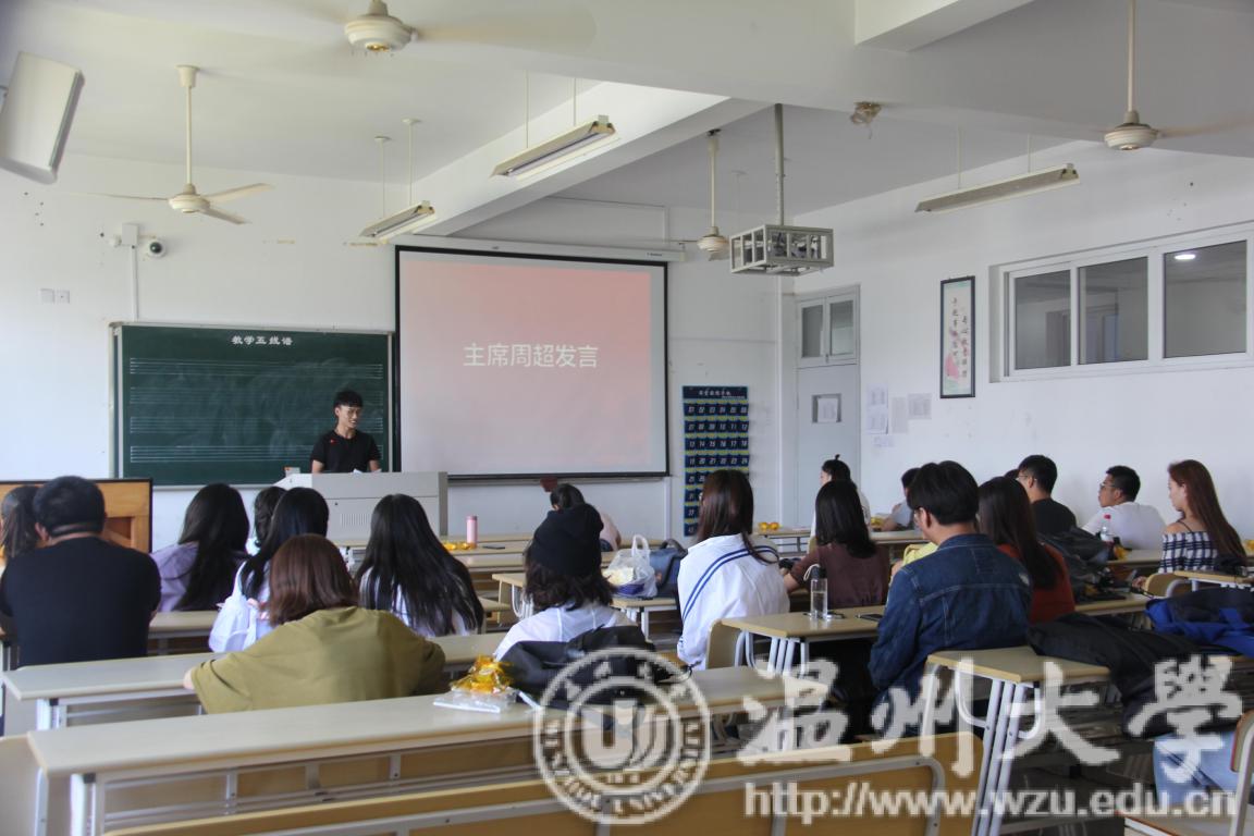 学生会主席周超发言,主要为大家讲述了如何用自己的热情感染身边的人。主席用生动形象的语言向我们阐述了如何不忘初心,始终保持初心,并表达了对大家的期望。