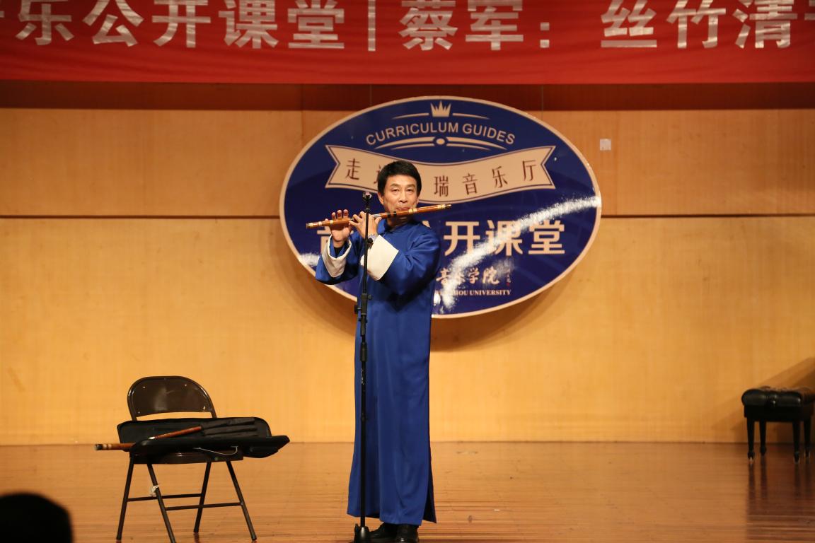 天瑞音乐厅成功举行。蔡老师不愧是温大名师,主持并演奏有条不紊、有声有色。所有嘉宾的演奏都很出彩,可以说是零瑕疵、超完美。节目顺序的安排及串联自然平顺,蔡老师就像平时课堂上一样严谨幽默,循循善诱,字字珠玑,环环紧扣。音乐厅里同学们聚精会神,兴致盎然,时时爆发出热烈掌声。活动结束后,同学们仍沉浸在美妙的音乐中,大家反映,从蔡老师的音乐公开课中不仅学到了古今民乐流派的精髓,更亲耳听到了国乐的天籁之音,激发了努力学习民乐的热情和积极性……。