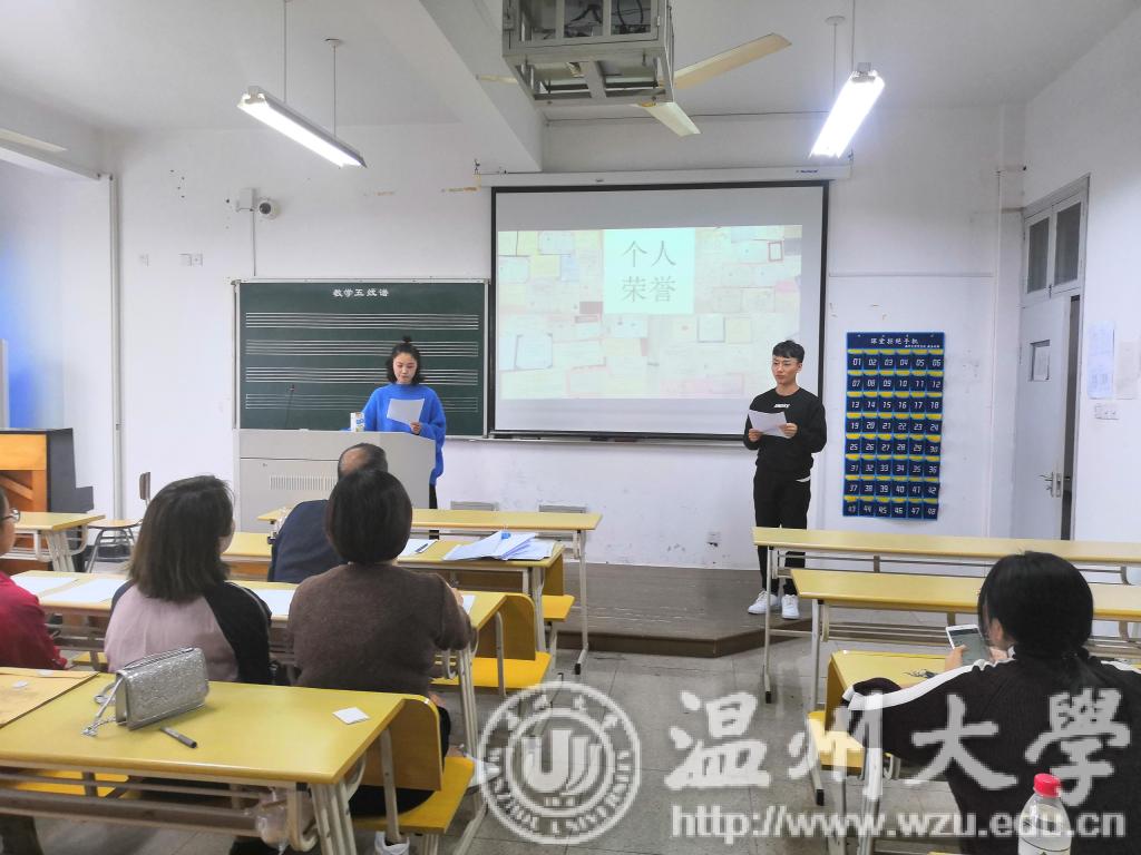 在外语楼408教室开展优秀学风班评比活动。方建敏书记、林海红老师、郭瑞芬老师、学生会学习部负责人以及各班代表参加了本次评选活动。
