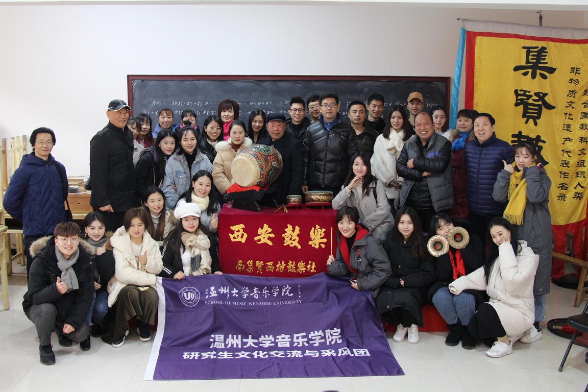 研究生在院长赵玉卿教授、硕士生导师冯百跃教授、刘玉亭副教授、叶文辉副教授、科研秘书周斌老师的带领下,赴周至南集贤西村鼓乐社传习所采风。周至南集贤西村鼓乐社是目前西安鼓乐六大百年乐社其中之一,属于俗派风格的农村乐社。