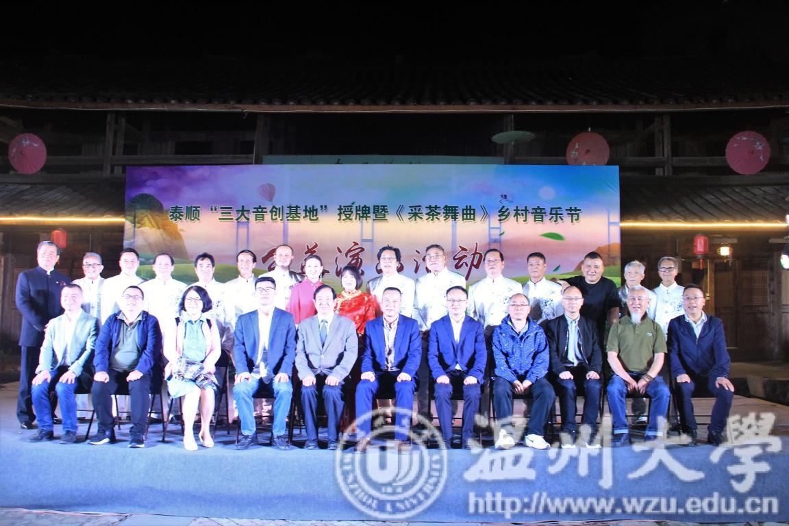 师生一行十余人在院长赵玉卿、党总支书记方建敏的带领下,应邀前往泰顺县东溪乡参加“泰顺县"三大音创基地"授牌暨《采茶舞曲》乡村音乐节”启动仪式。