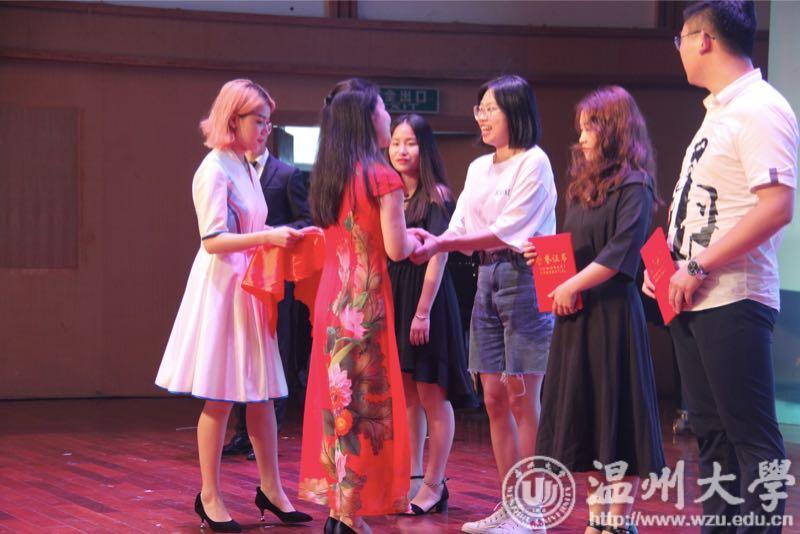 首先,由开场舞拉开了欢送会的序幕。接着由赵玉卿教授致辞,对到场的全院本科生,二十多位研究生以及全院老师,表达了深深的感谢与不舍。赵教授提及今天的欢送会也是2015届领导班子的最后一天任职。在各位领导的带领下,学院各方面不断发展,学科建设不断加强并取得了良好的成绩。最后赵老师给19届毕业生送上叮嘱与祝福:要树立远大目标,不能轻言放弃。 紧接着,各领导为校、省优秀毕业生和国家奖学金获得者进行了颁奖,她们是在坐本科生的榜样。在新旧领导班子的致辞后,李晓燕老师倾情演唱了一首《青春舞曲》,即使19届的同学毕业了,但是她们的青春之旅还在进行。