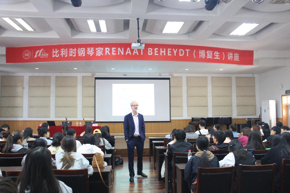 第二周的艺术周活动正式拉开帷幕。第一场活动就是分量极重的学术讲座,主讲老师是比利时钢琴家BENAAT BEHEYDT(博复生),此次讲座的主题是:听录音的重要性与危险性。