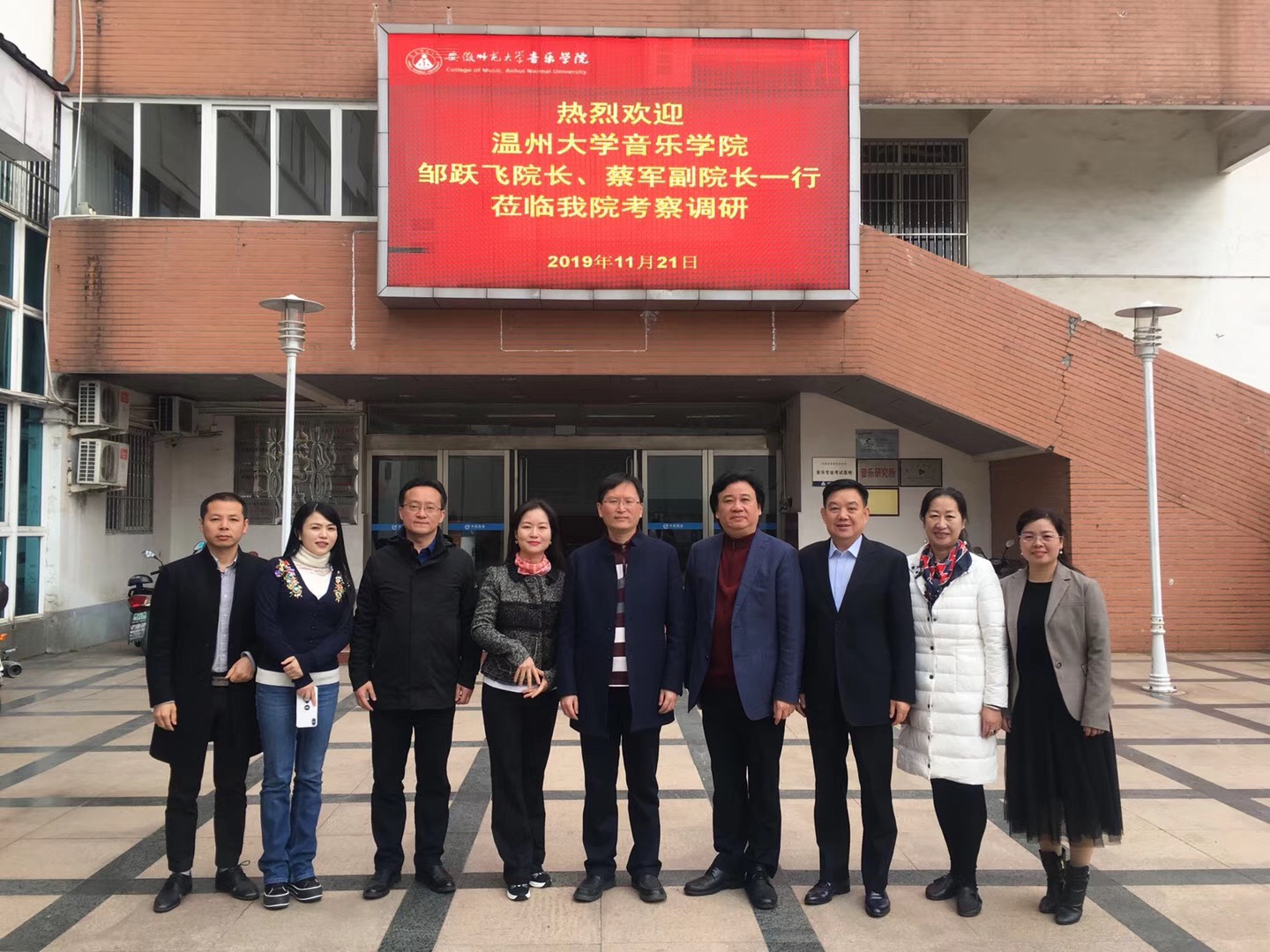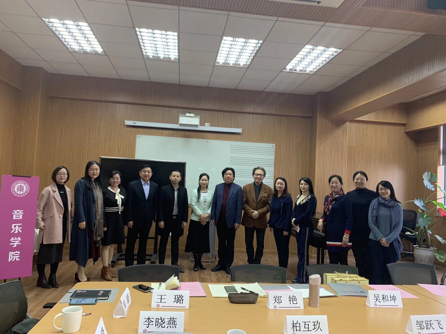 ,院长吴和坤、书记杨海燕等出席了座谈会,吴院长代表学院致欢迎辞,并对学院基本情况、人才培养模式、本科生交流项目、文化建设项目等进行了介绍。邹跃飞院长对该院的热情接待和诚恳交流表示感谢,并介绍了学院的基本情况和办学成果。双方围绕音乐学师范专业的师资、课程设置、人才培养方案、学科贡献度等工作进行对口交流。