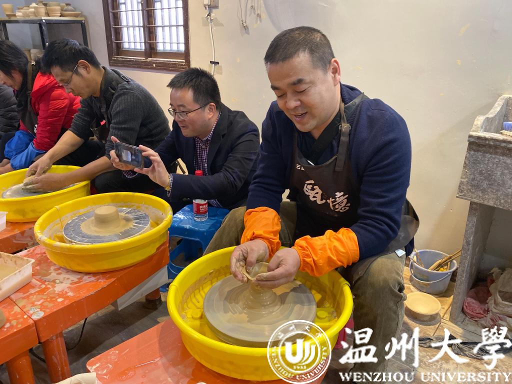 参观完永嘉楠溪江苍坡古村,全体教职工又来到了永嘉瓯窑小镇参观,并体验当地的手作(陶瓷)。