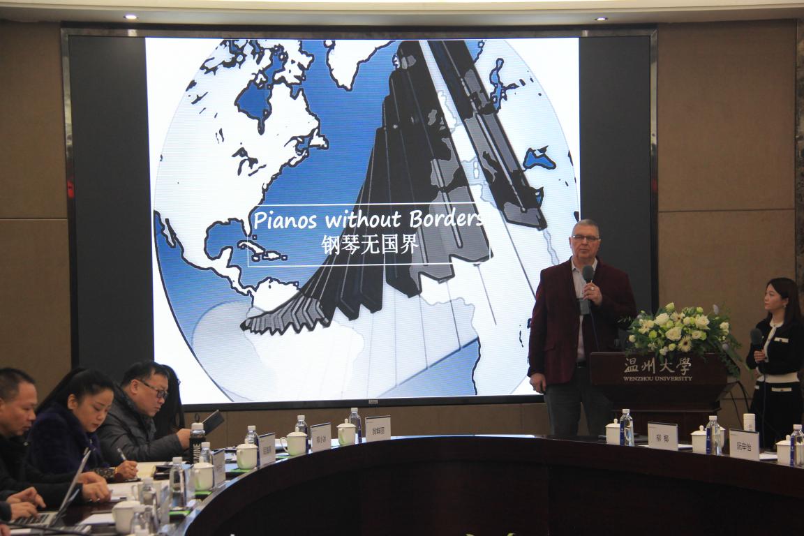 而后lgor Palyanovich教授讲述了俄罗斯音乐教育方法创新与应用。这个讲座创新应用是他与她的夫人一起完成的,她已经从事小提琴教学40余年了,乐团是一个很好的学习方式,同时有助于学生掌握情感,提高注意力,锻炼能力,在他和他爱人四十多年的教育来看,每个人刚开始学习时都要找寻适合自己的学习方法,锻炼他们的音乐素养,他们他们设计了教学方案并加以推广且在很多学校实行,并得到了很好的结果,培养了学生的学习习惯得到了一致认可与好评。创新的目的是为初学者建立弹琴基础并提升演奏技巧的,为了让学生在枯燥的学习中感到乐趣于是加入了流行曲的因素,学习是要多元化的,随着年龄的升高去加强学习内容,培养学生的音乐能力,让学生参与音乐创作及音乐厅演出,这个过程给孩子们培养兴趣锻炼能力有些很重要的作用,让更多人了解音乐是最根本的目的,并希望将此方法介绍到中国学校,让中国的孩子和家长更加了解音乐。并在最后邀请在座的所有专家及学生们欣赏了一段有他的爱人和他合力制作的弦乐合奏乐曲。