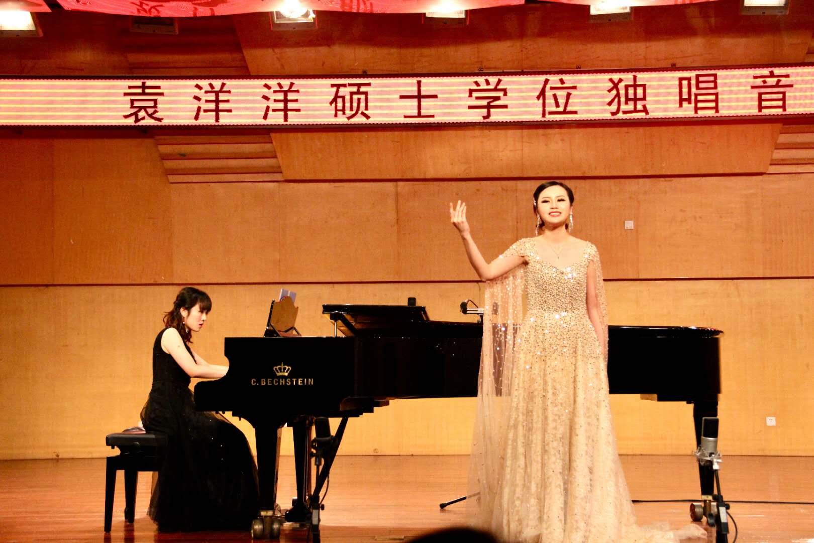 音乐会共分为两场,6点是第一场,由袁洋洋同学演唱。她演唱的歌曲有典型的川东民歌《大河涨水浪沙洲》、有蒙古民歌《莫尼山》也有陈田鹤为徐志摩的同名诗《山中》所谱写的艺术歌曲《山中》。而外国作品则有选自亨德尔的歌剧朱力乌丝.凯撒中的第三幕,女高音咏叹调《我哭泣,为我的命运》、也有法国作曲家比才作曲《打开你的心》也有意大利歌剧《乡村骑士》中的咏叹调《你也知道他,妈妈》等12首中外作品。