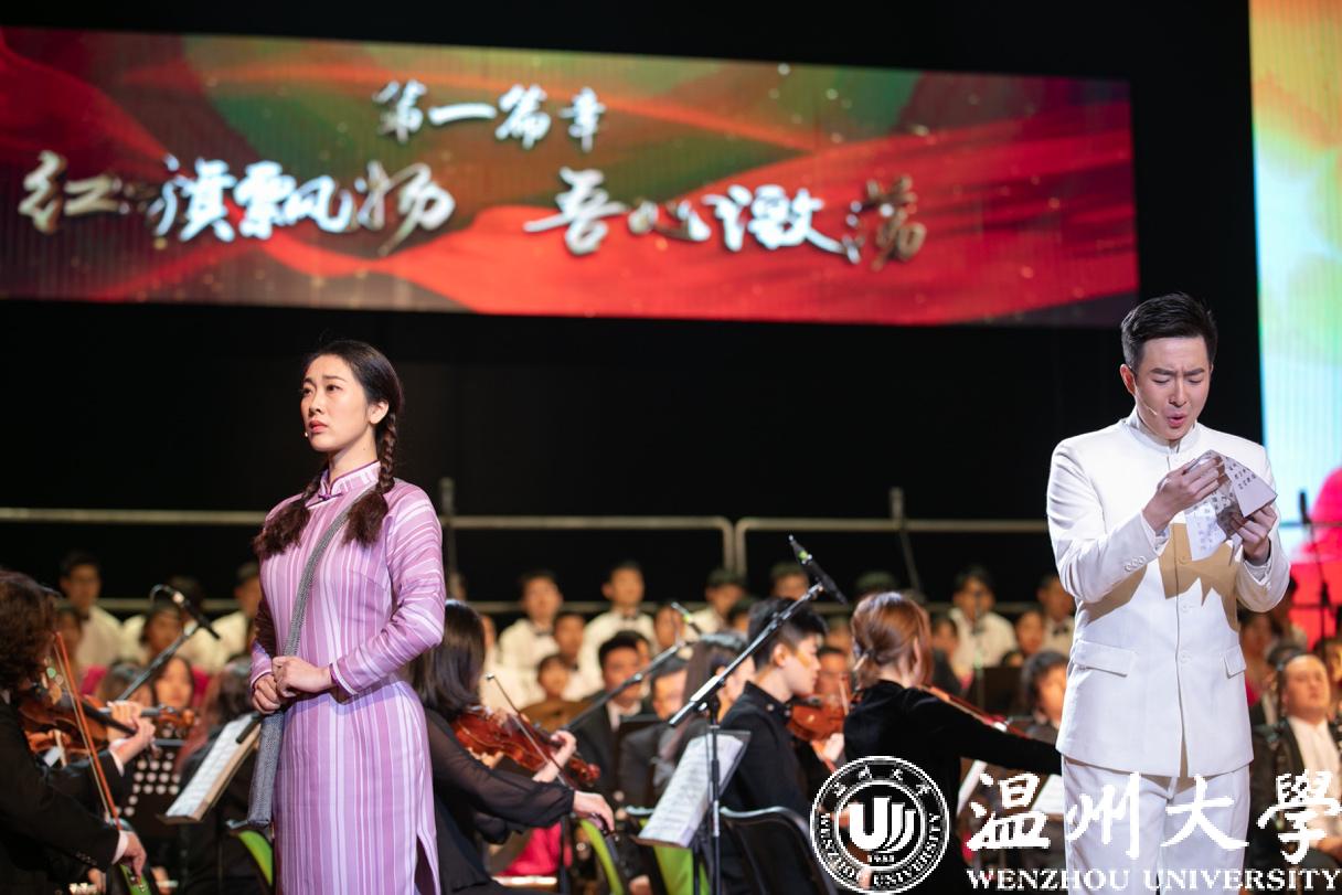 青年艺术剧院合唱团,演绎了我校创编的大型红色歌剧《五星红旗》,其中《你也为我绘一幅画》《这是我心中的启明》等精彩篇章的再次呈现,让全校师生重温了我校校友曾联松投身革命、设计五星红旗的革命精神和家国情怀。