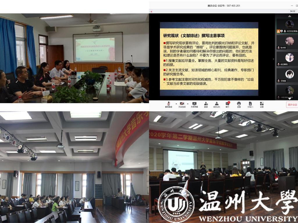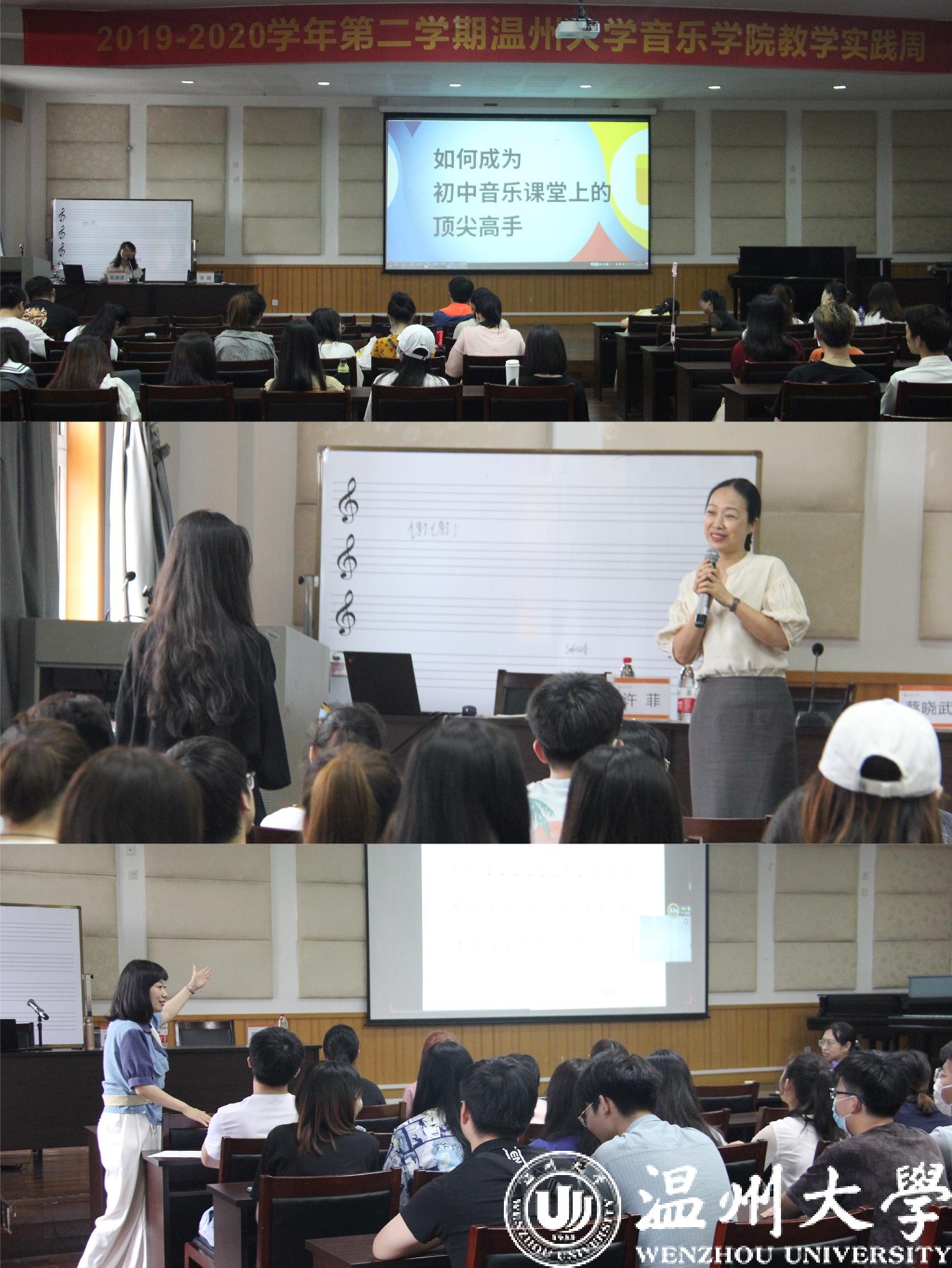 音乐名师讲堂系列活动三场,分别邀请了温州市第二外国语学校陈潇潇老师主讲《如何成为初中音乐课堂上的顶尖高手》、温州中学许菲老师主讲《教之本事——高中音乐课堂教学分享》、色情视频