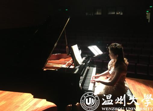 舞台上,暖暖的灯光温柔的洒落在钢琴上,演奏者一袭大红色的长裙为舞台的单调增添了一抹色彩,指尖触到琴键时,音符仿佛活了起来,绕着钢琴缓缓地上升到空中,再渐渐的蔓延到整个剧场,令人回味无穷。3月11日,青年钢琴教师阮辛怡在温州大剧院音乐厅录制的第一场音乐会被搬上“云端音乐厅”,给大家带来一场精彩的中国作品钢琴独奏音乐会。在线上,除了能听到优美的钢琴演奏,还可以了解到阮辛怡老师的个人简介和乐曲作品介绍;3月24日上线的第二场“外国作品专场”,由钢琴老师莫颖、陈颖、陈露雯及小提琴老师蒋乐乐共同演绎,除了钢琴独奏,还加入了四手联弹、六手联弹及小提琴独奏。为了音乐会形式多样化的需要,莫颖老师和陈露雯老师特意策划了一场温州原创歌剧《五星红旗》的钢琴演奏版音乐会。为了完整呈现这场音乐会的艺术效果,在排练期间,两位老师多次跟歌剧作曲家进行电话沟通,对原来的钢琴伴奏谱子不断地进行改编。录制的当天,天气寒冷,为了顺利完成音乐会的摄制大家整整花了九个小时去录制。