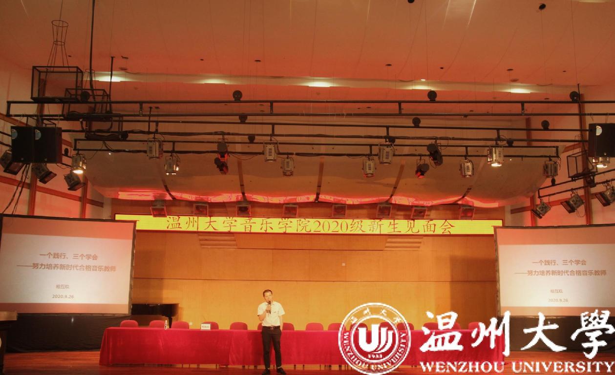 北校区天瑞音乐厅召开,2020级全体新生参加。讲座的主题是——一个践行、三个学会,努力培养新时代合格音乐教师。