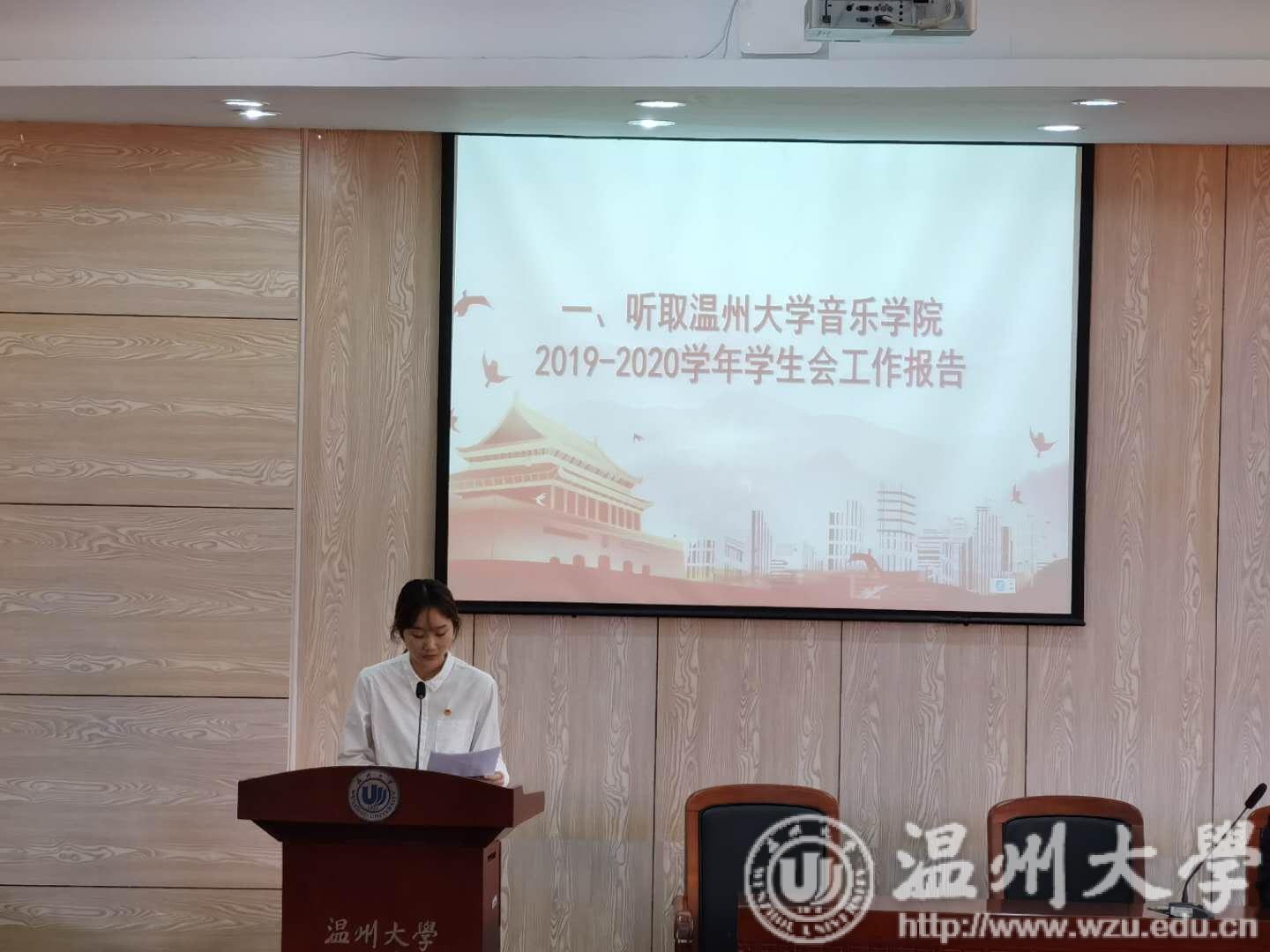 2019-2020学年学生会工作报告。上一届主席团成员王奕宁作上一学年工作报告。她首先对一直以来对色情视频