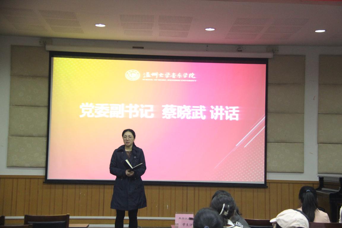 大会伊始,蔡晓武就大会主题作了讲话,她从当前学院的学风建设成效出发,指出:班级的学风、班风建设非常重要,是这个班级生命力、凝聚力最直接的体现,也是班级同学持续进取,力争上游的不竭动力源泉。在阐述了学院的学风建设目标后,对全体同学提出了要求,希望大家能够时刻严于律己,见贤思齐,积极参与班级活动。人人争做标兵,班班争创优良学风班,打造高标准、高质量学风、班风和院风建设。