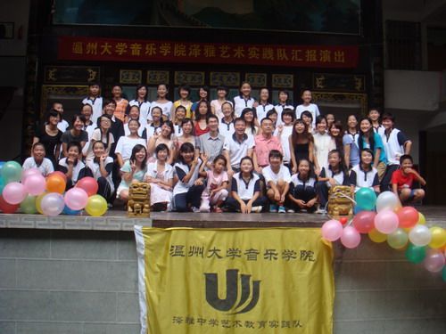 的实践队员们,面对着脸上流露出对知识和艺术的向往与渴望的泽雅中学同学们,他们俨然一个个老师的姿态,按照初定的教学计划,教授课程包括舞蹈,声乐,钢琴,绘画,竖笛等等。泽雅中学没有专门的音乐老师,因此,学生们对音乐可谓一窍不通,五音不全的现象比比皆是,如何在短短的一周为同学们带来音乐和美术的熏陶,快速提高艺术素养成为摆在实践队员面前的一个难题。队员们根据同学们的不同情况,采取因材施教、分班教学的方法,尽自己的最大努力,把艺术气息带给孩子们。