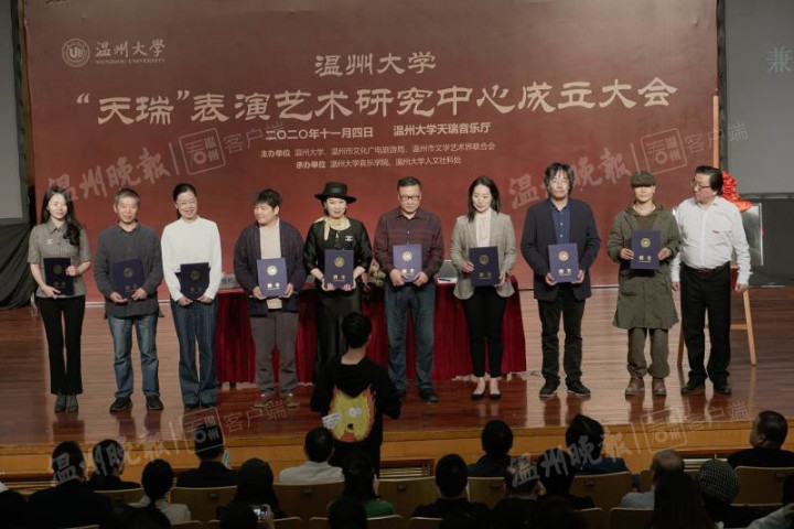 博士、教授40余人,以及温州市表演艺术领域的艺术家、学者20余人,是温州地区表演艺术人才的聚集地。“天瑞”表演艺术研究中心旨在深度挖掘、研究温州及浙江地区优秀的传统艺术文化,创作推广讴歌时代风貌、彰显民族精神、符合人民审美的优秀艺术作品,以构筑温州表演艺术文化高地,打响温州文化品牌,提升温州城市内涵,助力地方经济社会发展。