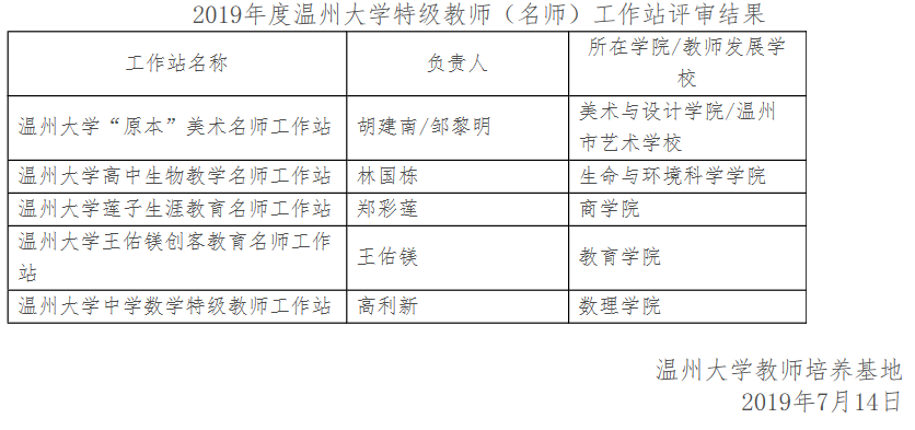 根据《色情视频 特级教师(名师)工作站管理办法(试行)》(温大行政〔2018〕74号)文件的相关规定,经校内专家评审,同意“色情视频 ‘原本’美术名师工作站”等五个工作站立项为2019年度色情视频 特级教师(名师)工作站建站。现将评审结果予以公示,公示时间为五天(7月14日-7月18日)。如有异议,请与色情视频 教师培养基地朱伟老师联系,联系电话:665134。