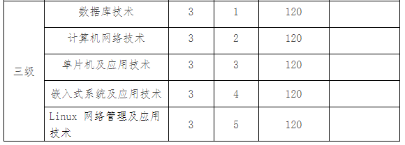 (六)三级:实行理论笔试,时间为120分钟。共有数据库技术、计算机网络技术、单片机及应用技术、嵌入式系统及应用技术、Linux网络管理及应用技术五个考种。